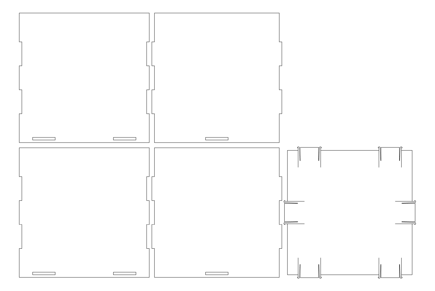 Los ensambles más utilizados en piezas fabricadas en corte láser son los machihembrados (también conocidos como ensambles de dientes múltiples), mismos que en piezas cerradas ofrecen una estructura muy firme.