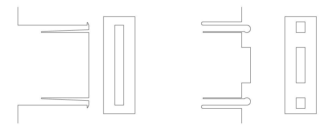 Las piezas que van a cargar peso como cajas y charolas pueden requerir una unión en la que su base atraviese completamente sus paredes, puedes utilizar perforaciones rectangulares y dientes pero utilizando clips a presión puedes reforzar esta unión sin requerir adhesivo y al mismo tiempo obtener la posibilidad de armar y desarmar la pieza varias veces ya que funcionan con base en la elasticidad del material.