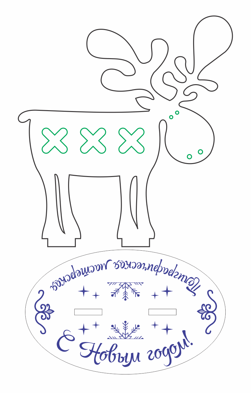 Te compartimos un vector descargable para reproducir una decoración navideña con forma de alce. Tiene base para estar de pie.