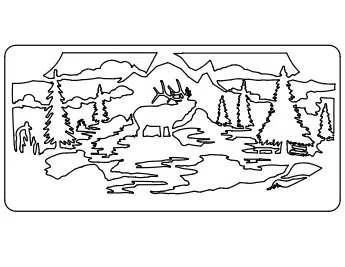 Te compartimos un vector descargable para reproducir la silueta de un alce entre montañas de pino.