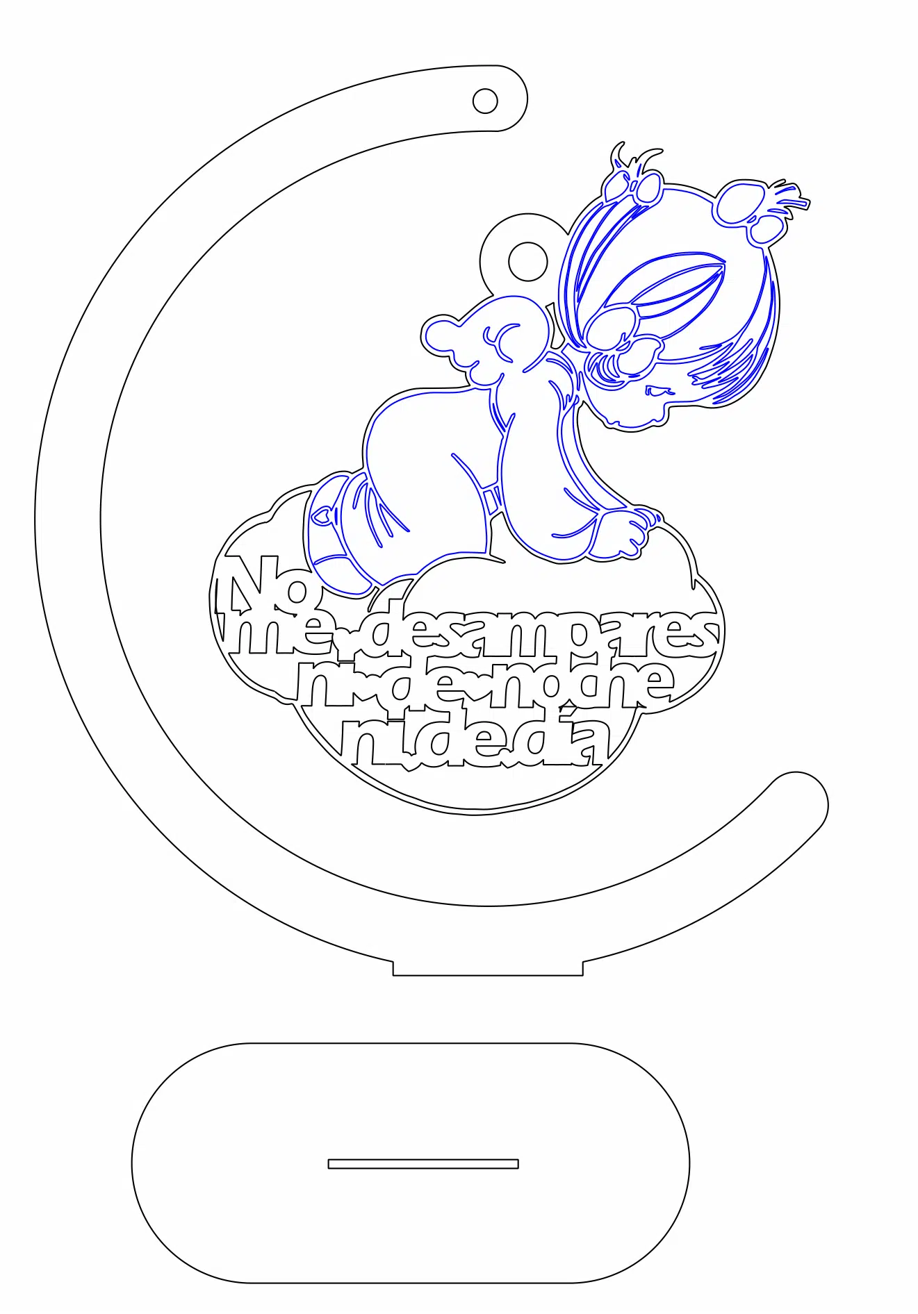 Te compartimos un vector descargable para reproducir un objeto decorativo con un ángel y la frese «No me desampares ni de noche ni de día».