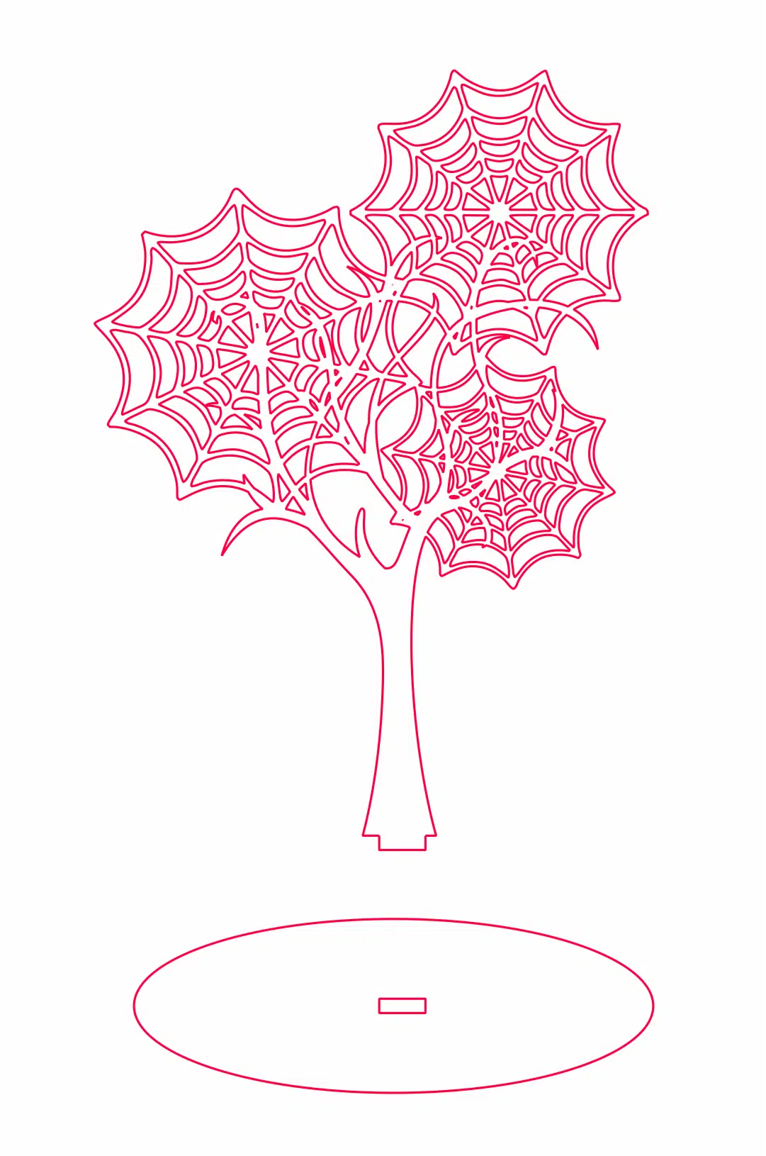 Te compartimos un vector descargable para reproducir una decoración de mesa con forma de árbol, con la copa formada por telarañas.