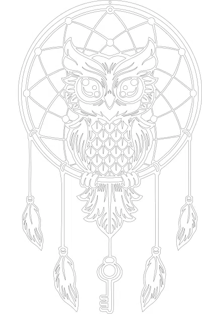Te compartimos un vector descargable para reproducir el diseño de un atrapasueños con una lechuza en el centro.