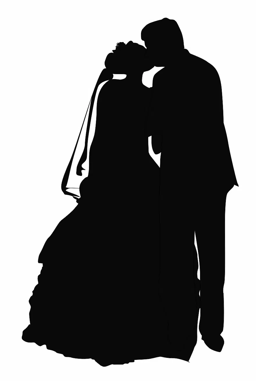 Te compartimos un vector descargable para reproducir la sombra de un par de nuevos esposos dándose un beso.
