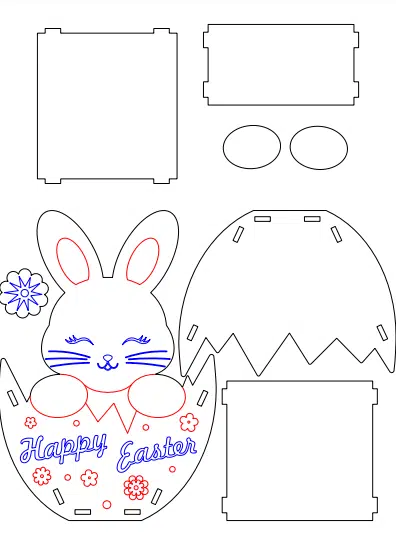 Te compartimos un vector descargable para reproducir una caja en forma de huevo de pascua con un pequeño conejo dentro.