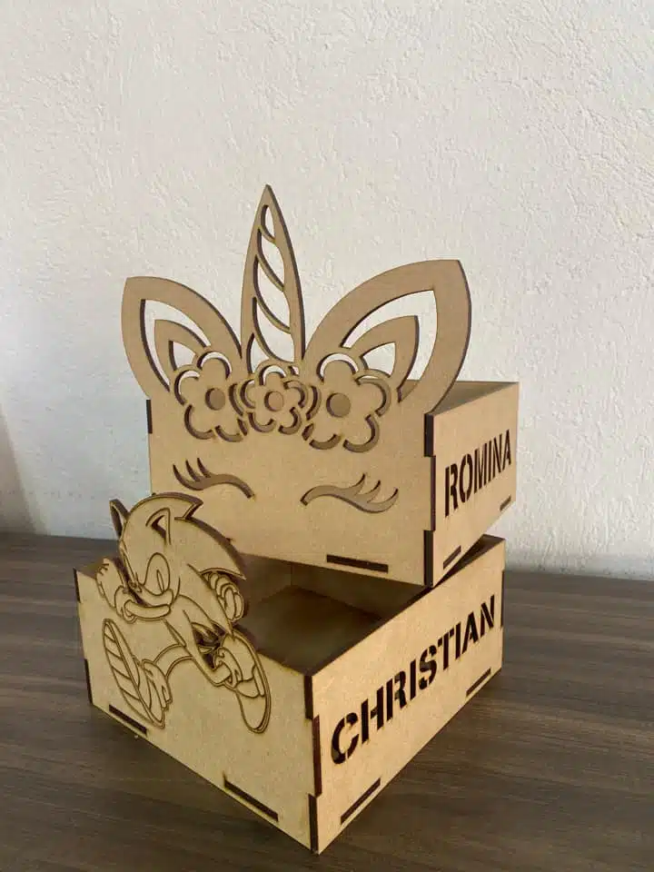 Te compartimos un vector descargable para reproducir el diseño de una caja dulcera, decorada en la cara frontal con una cara de unicornio. Es personalizable con un nombre en su costado.