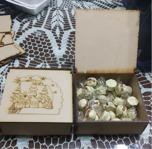 Te compartimos un vector descargable para crear una caja para chocolates con decoraciones navideñas.