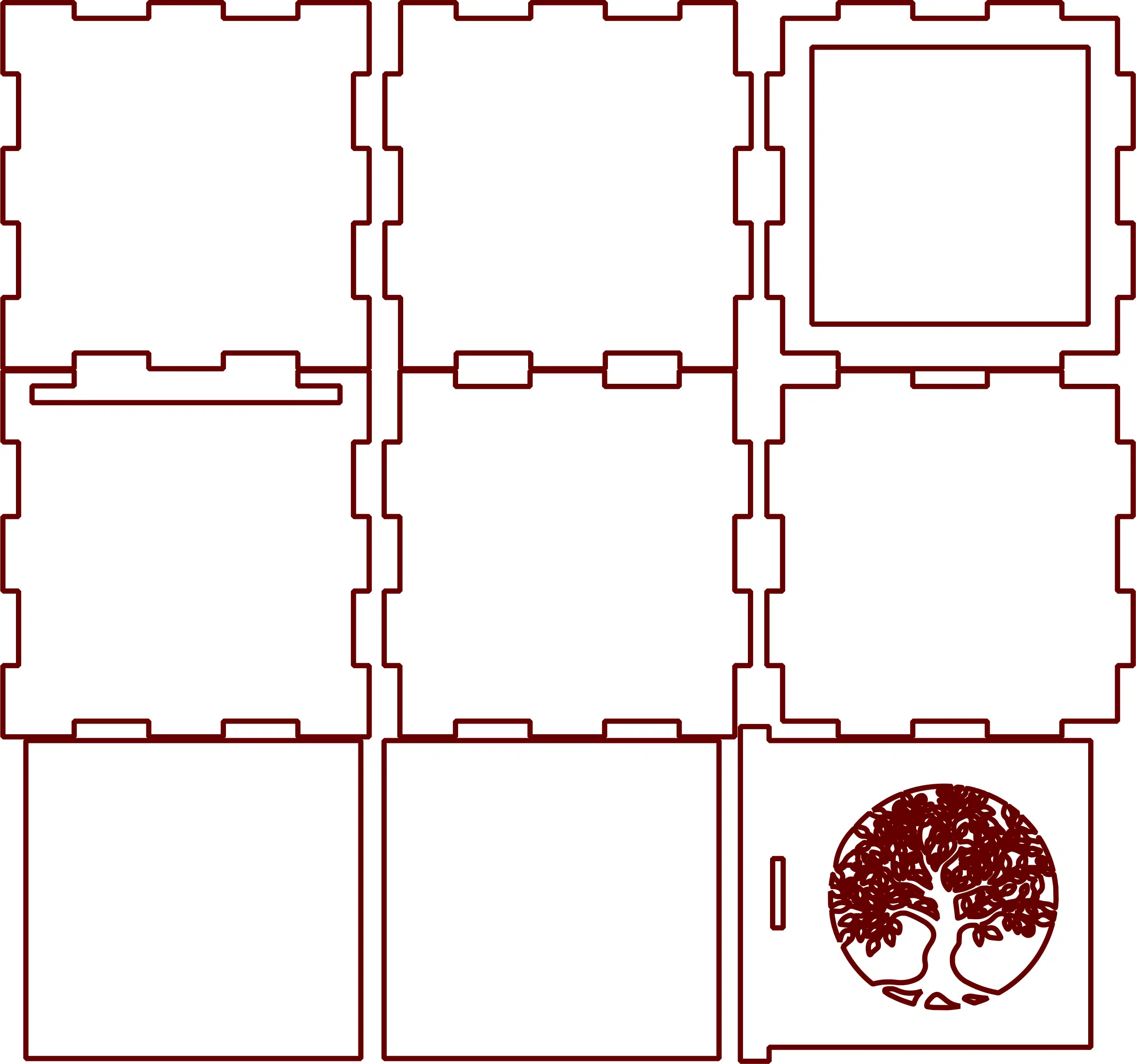 Te compartimos un vector descargable para reproducir el modelo de una cajita de 8x8cm con tapa corrediza.