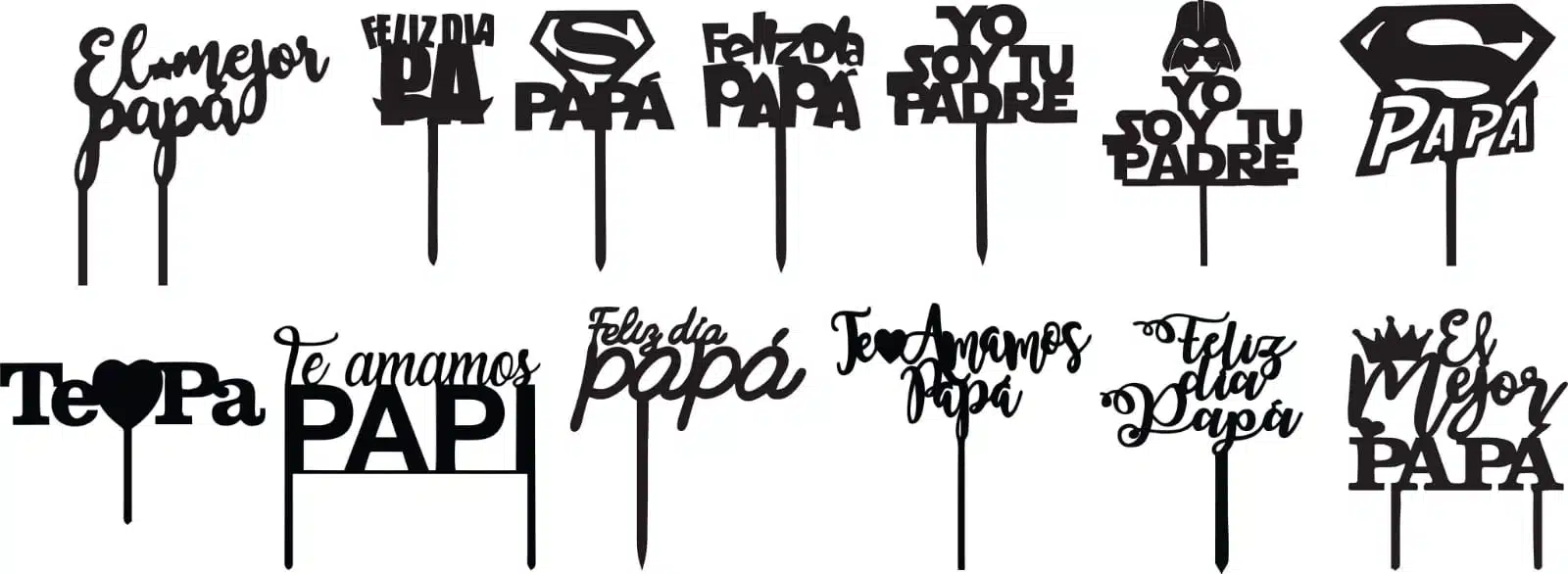 Te compartimos un vector descargable para reproducir varios modelos de decoraciones para pastel, con diseños alusivos al Día del Padre.