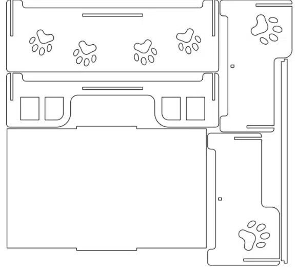 Te compartimos un vector descargable para crear el modelo de una casa para perro, decorada con formas de huellas.