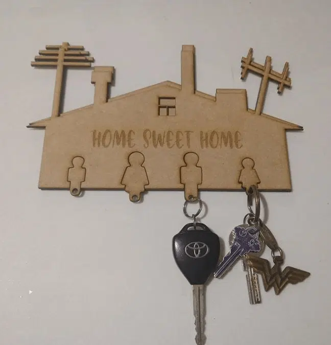 Te compartimos un vector descargable para reproducir el diseño de una casa portallaves, con 4 espacios.