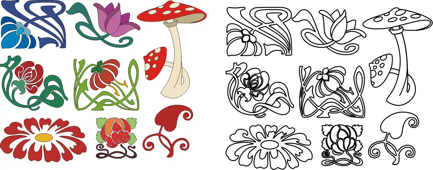 Te compartimos un vector descargable para reproducir clip art de flores tanto a color como blanco y negro.