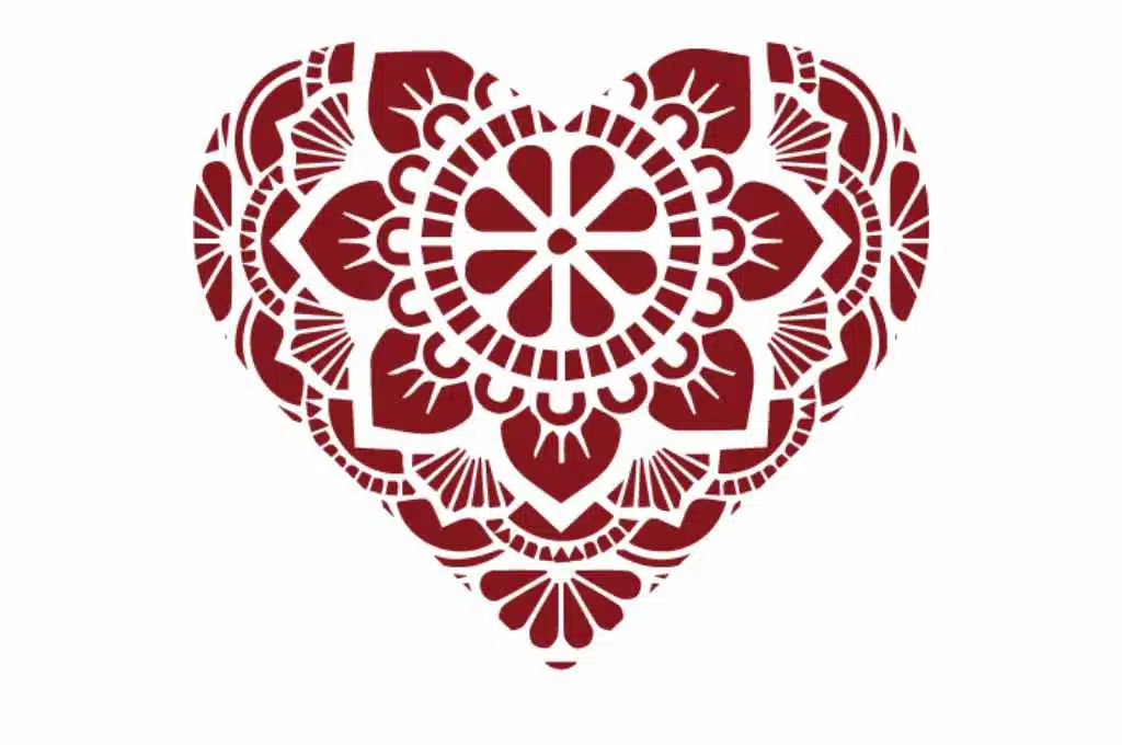 Te compartimos un vector descargable para reproducir el diseño de un corazón de mandala.