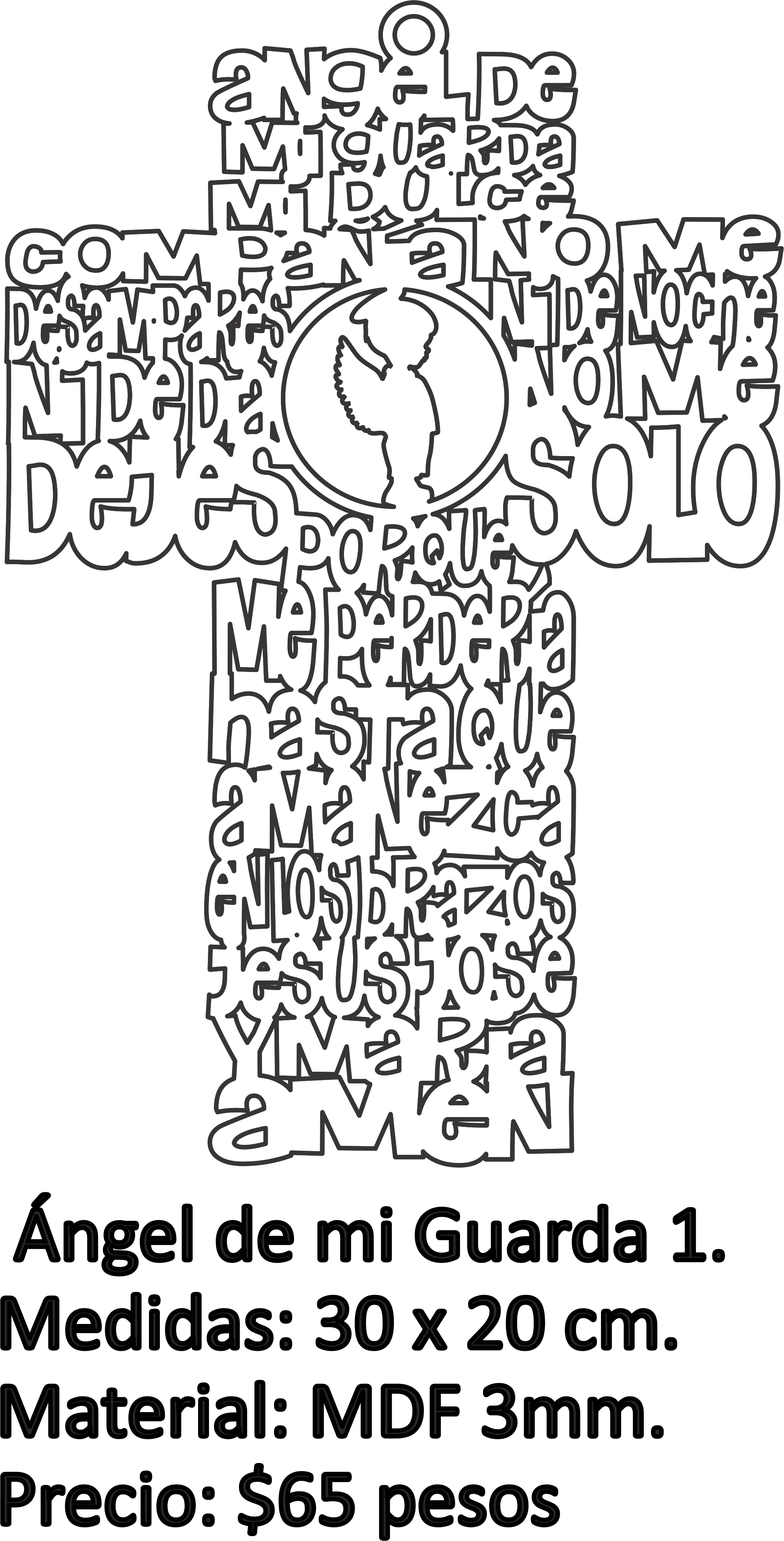 Te compartimos un vector descargable para crear una cruz formada por la oración del «Ángel de mi guarda», con un ángel niño en el centro.