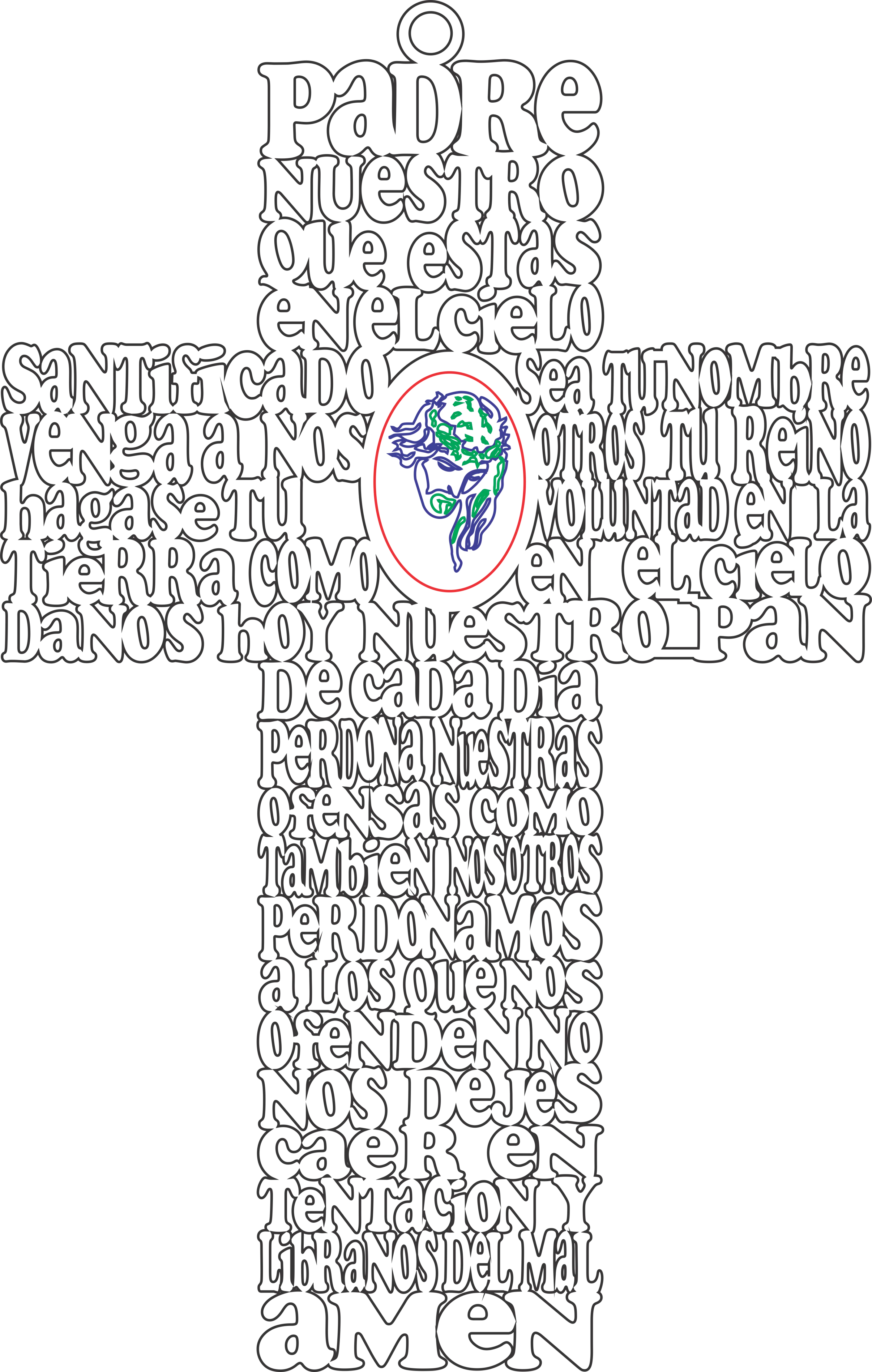 Te compartimos un vector descargable para crear una cruz con la oración del Padre Nuestro y un Cristo con corona de espinas.
