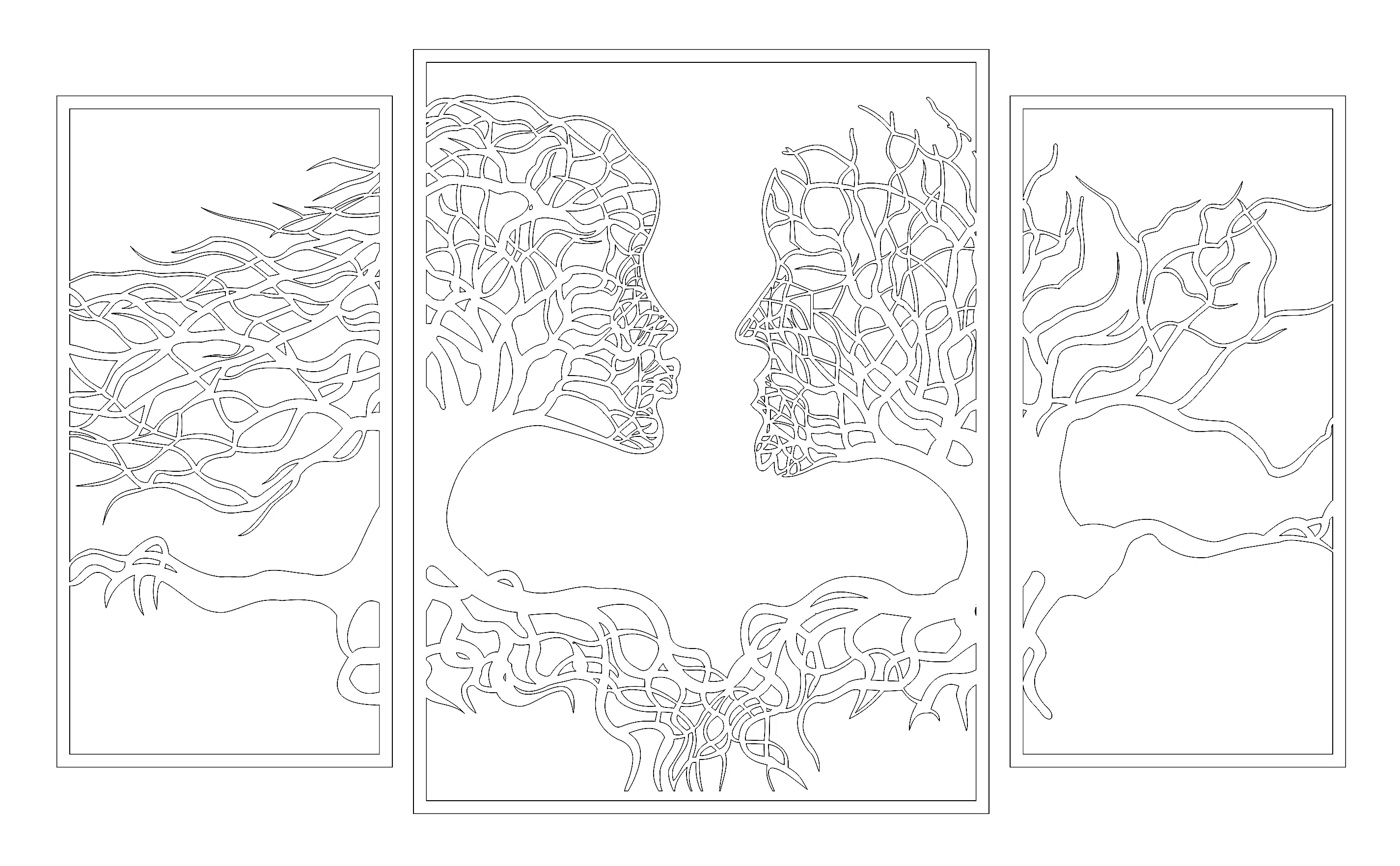 Te compartimos un vector descargable para reproducir un set de cuadros con dos árboles, cuyas ramas y raíces forman dos rostros humanos.