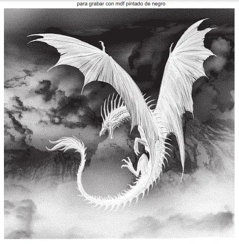 Te compartimos un vector descargable con diseño de dragón para grabar en MDF negro.
