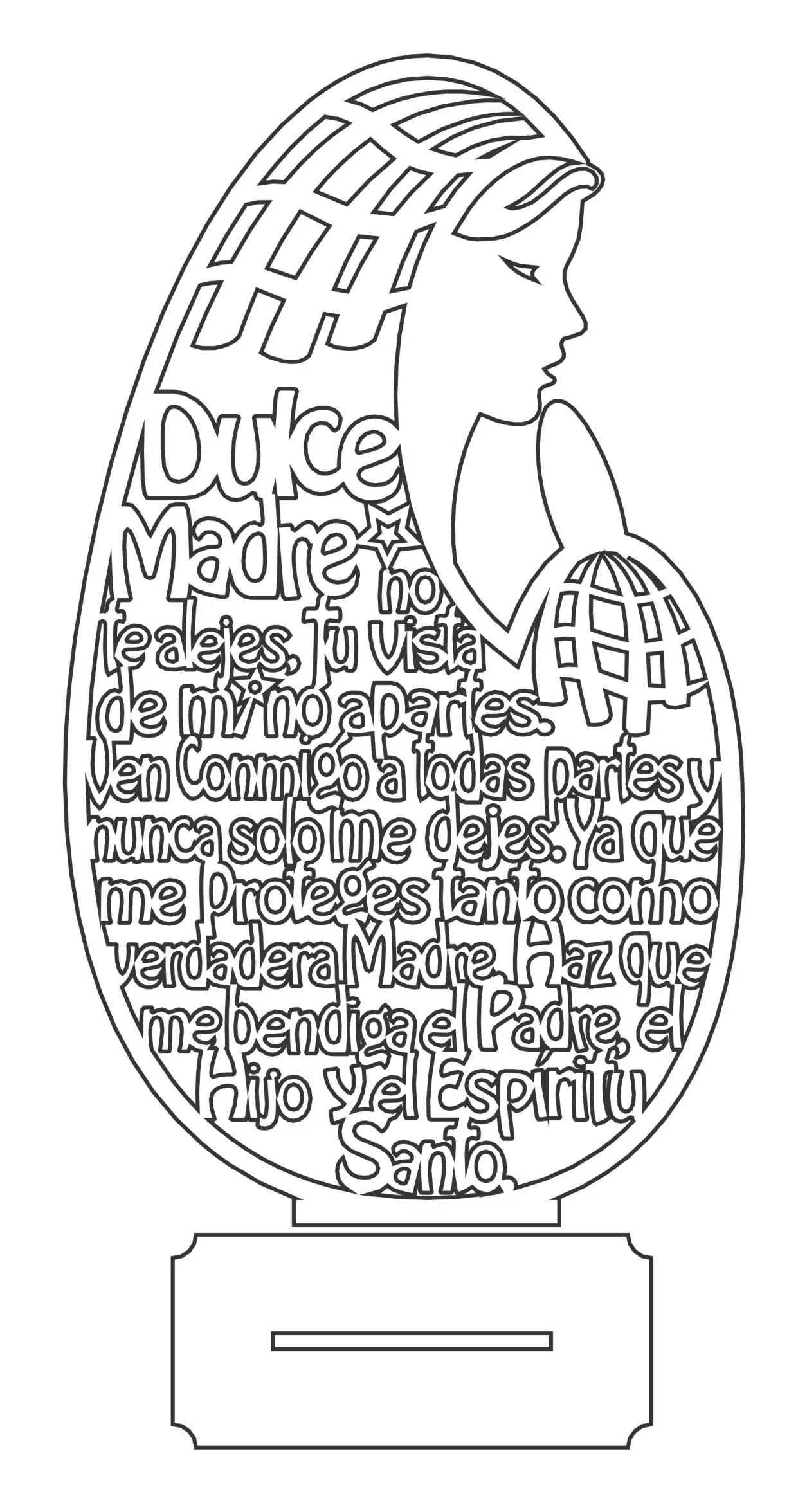 Te compartimos un vector descargable para reproducir la imagen de una virgen con la oración «Dulce Madre» en su interior.