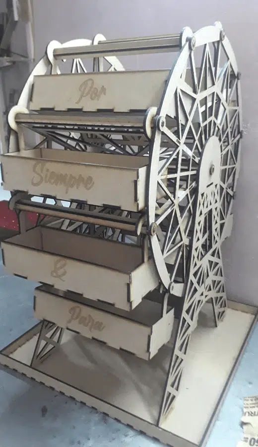 Te compartimos un vector descargable para reproducir un dulcero con forma de rueda de la fortuna, con la frase grabada: Por siempre & para siempre.
