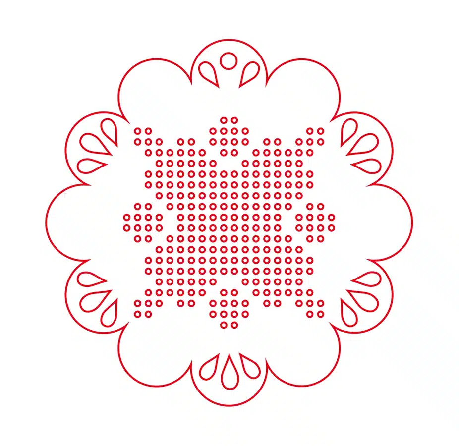 Te compartimos un vector descargable para elaborar una esfera con forma de flor, tiene orificios para ser bordada.