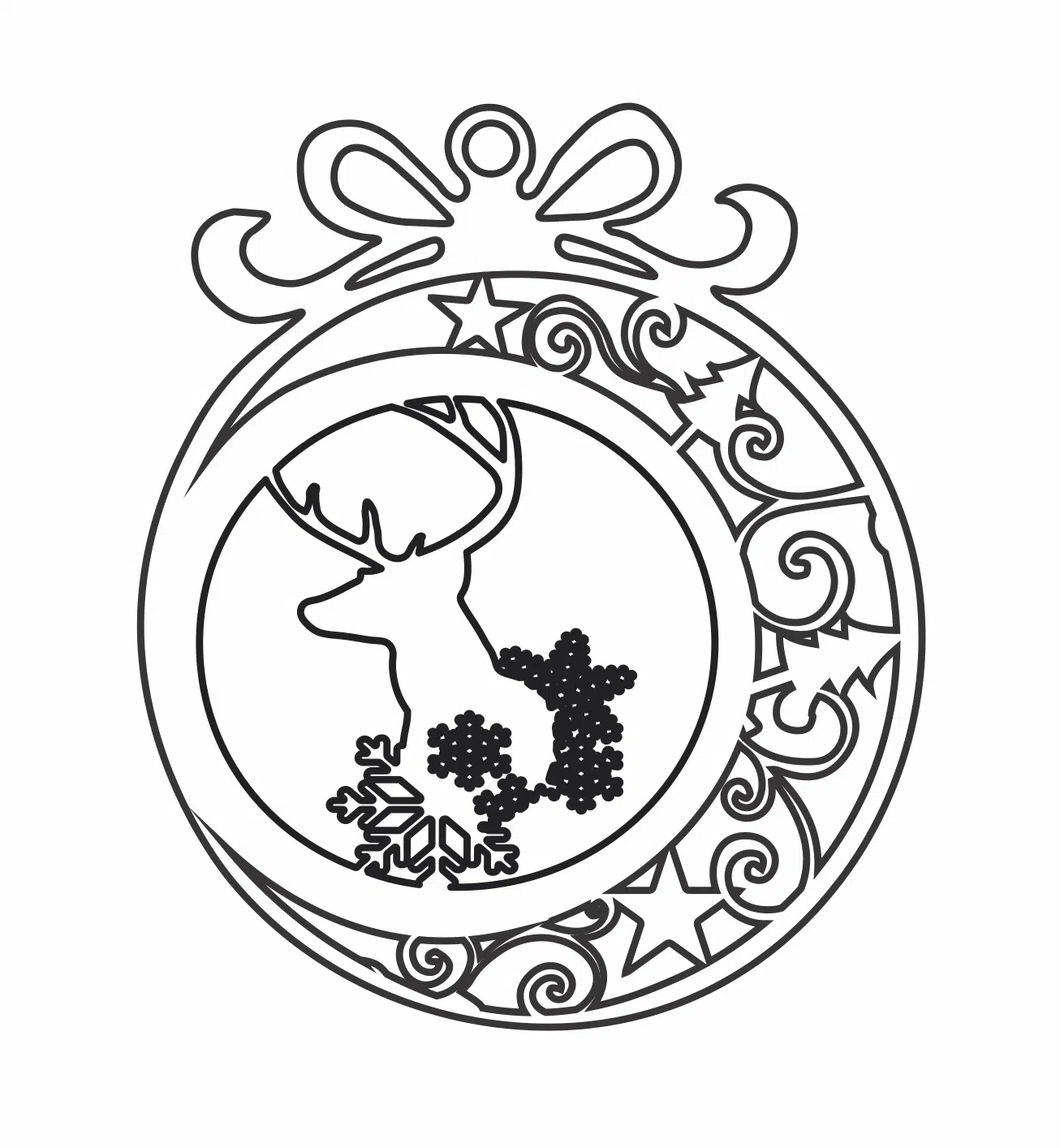 Te compartimos un vector descargable para reproducir el diseño de una esfera, decorada con un reno y copos de nieve.