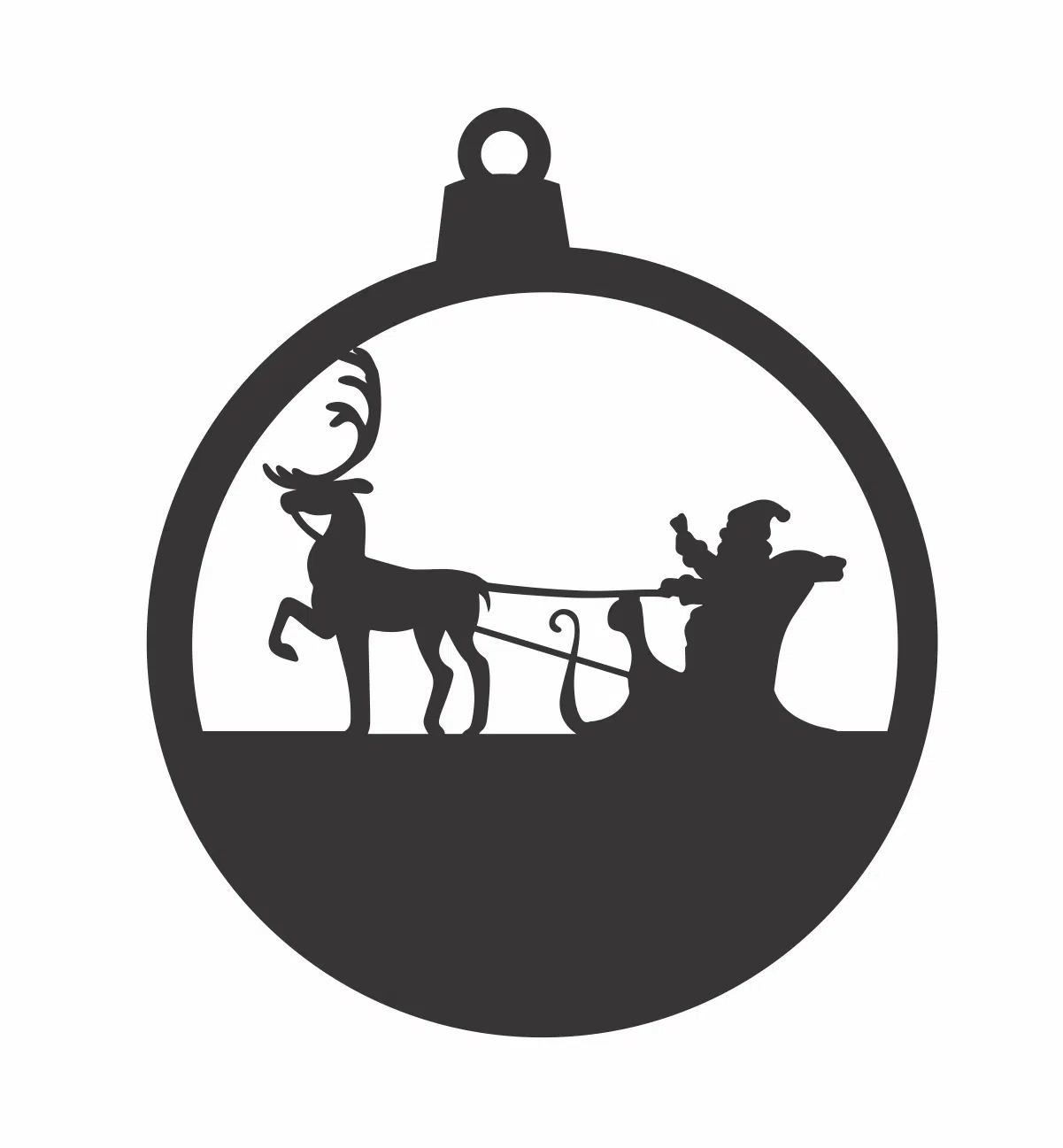 Te compartimos un vector descargable para reproducir el modelo de una esfera redonda, decorada con la imagen calada de Santa Claus en su trineo.