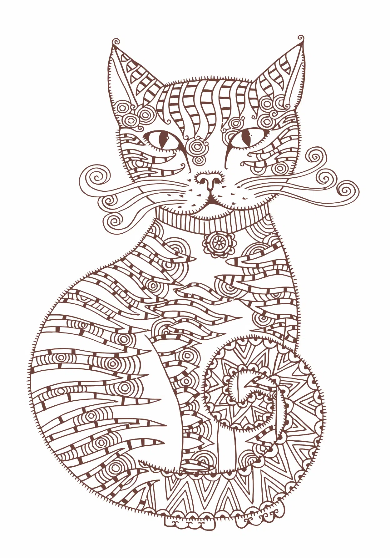 Te compartimos un vector descargable para reproducir la imagen de un gato ribeteado con bigotes de espiral.