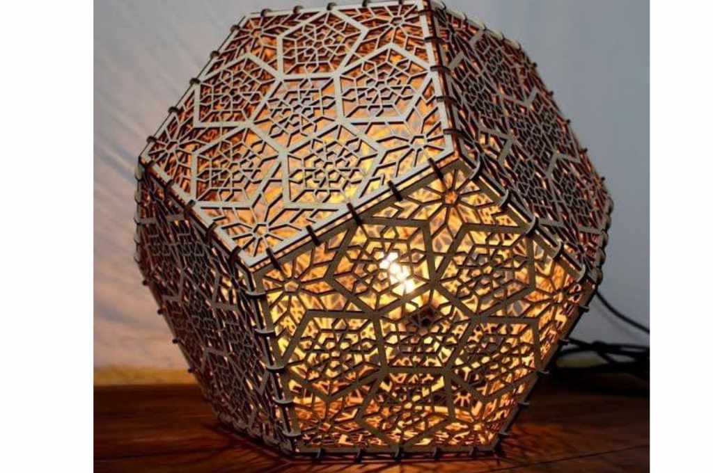 Te compartimos un vector descargable para reproducir el diseño de una lámpara con forma de «Dodecaedro».