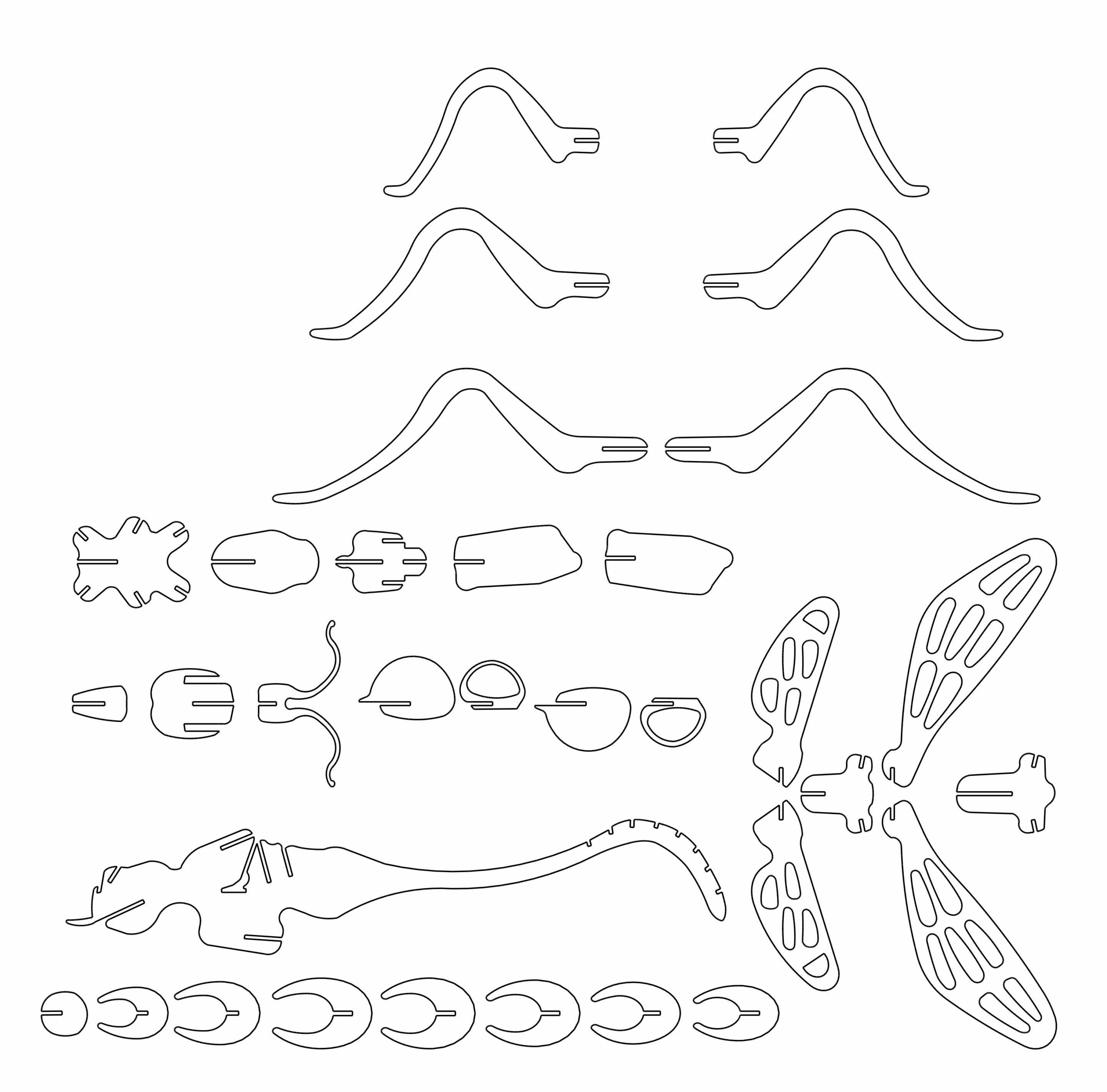 Te compartimos un vector descargable para reproducir el diseño de una libélula armable.