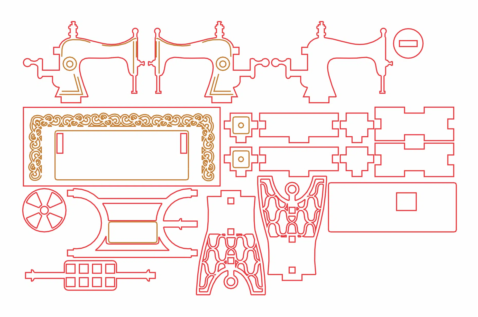 Te compartimos un vector descargable para reproducir un modelo tridimensional, a escala, de una máquina de coser, antigua.