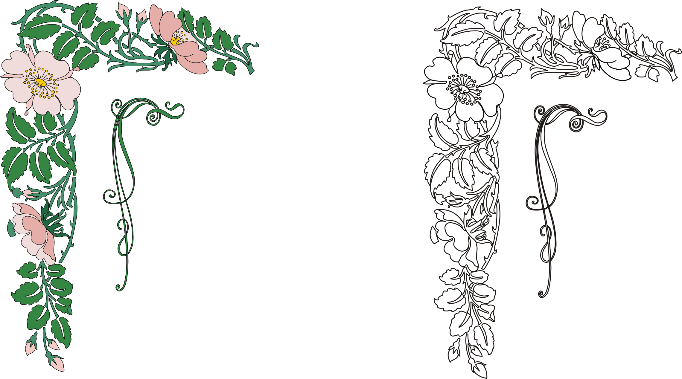 Te compartimos un vector descargable para reproducir un marco florar a color, y blanco y negro.