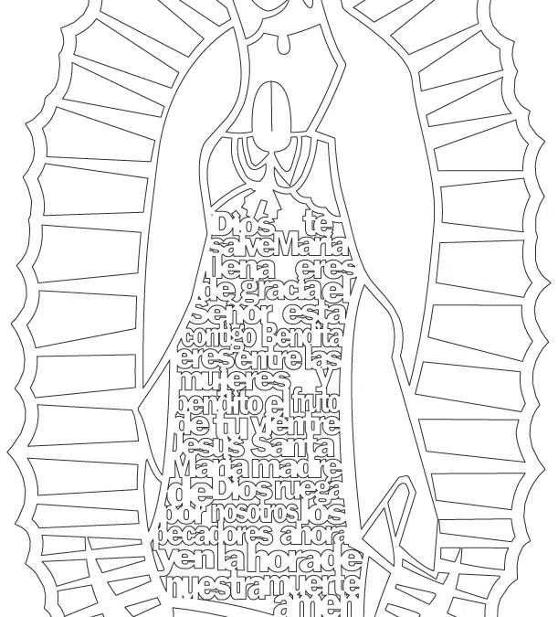 Te compartimos un vector descargable para crear la imagen de la Virgen de Guadalupe, con la frase «Santa María, Madre de Dios, ruega por nosotros los pecadores, ahora y en la hora de nuestra muerte». Utiliza máquina de corte CNC para la realización de este proyecto....