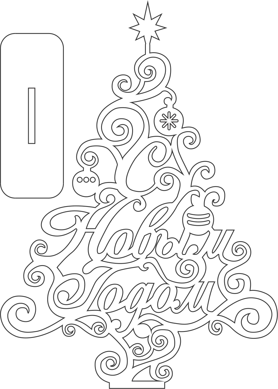Te compartimos un vector descargable para crear un pino con esferas y estrella, contiene la frase «Feliz Navidad».