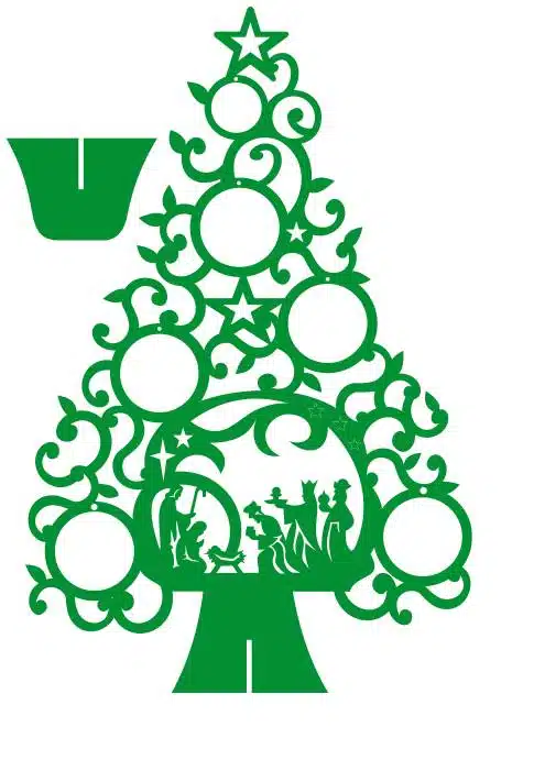 Te compartimos un vector descargable para crear un árbol navideño con un tradicional Nacimiento en su interior.