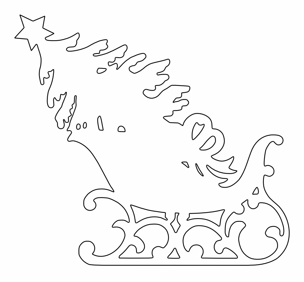 Te compartimos un vector descargable para reproducir el diseño de una decoración navideña con forma de trineo cargando con un pino.