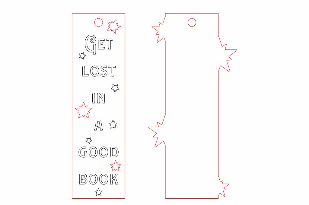 Te compartimos un vector descargable para reproducir el diseño de un separador de libros con decoración navideña, con la frase «Get lost in a good book».