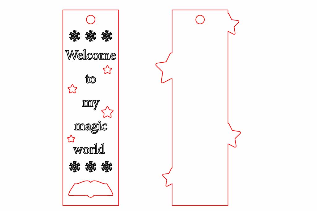 Te compartimos un vector descargable para reproducir el diseño de un separador de libros con decoración navideña, con la frase «Welcome to my magic world».