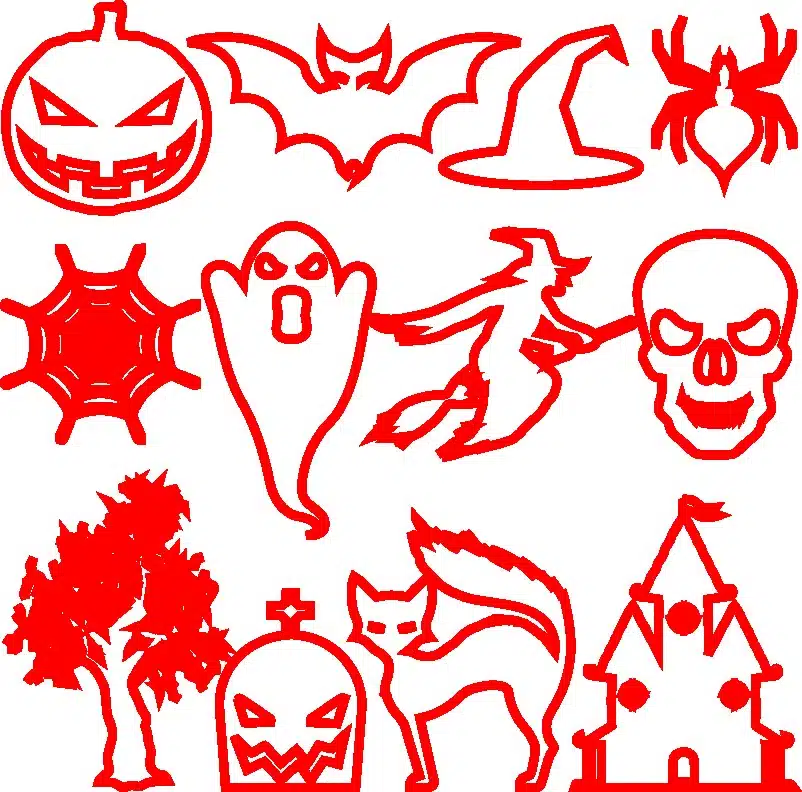 Te compartimos un vector descargable para reproducir un set de decoraciones de Halloween.