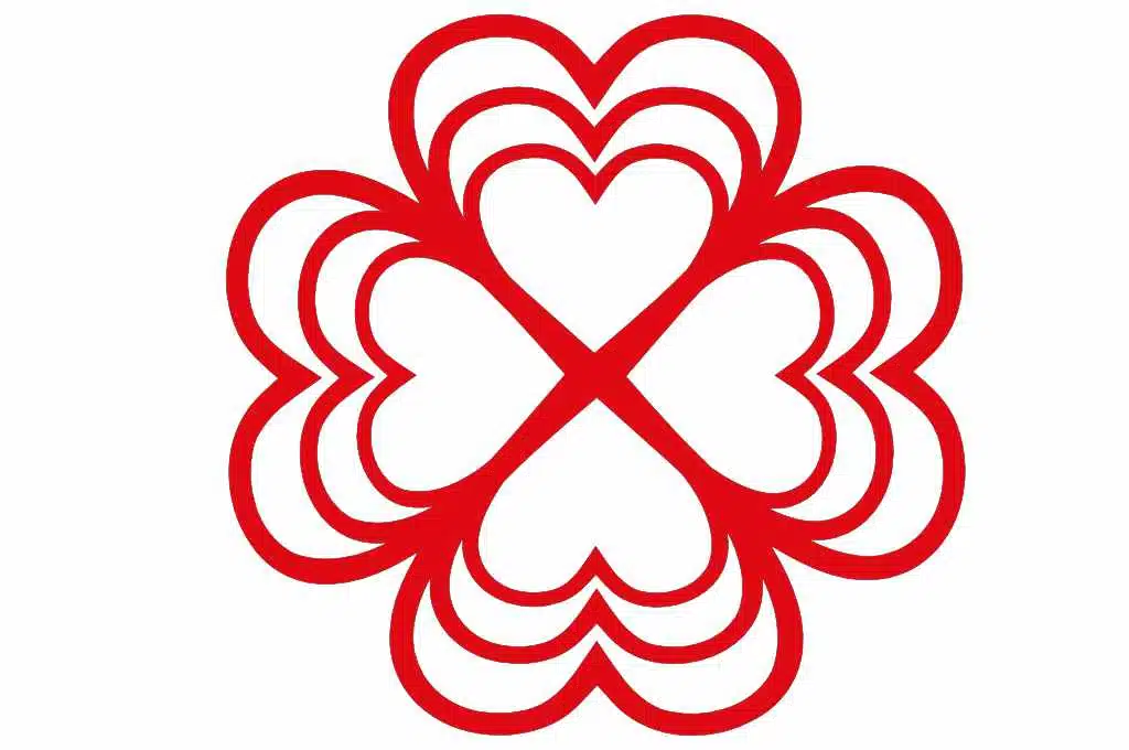 Te compartimos un vector descargable para reproducir el diseño de un trébol de corazones.