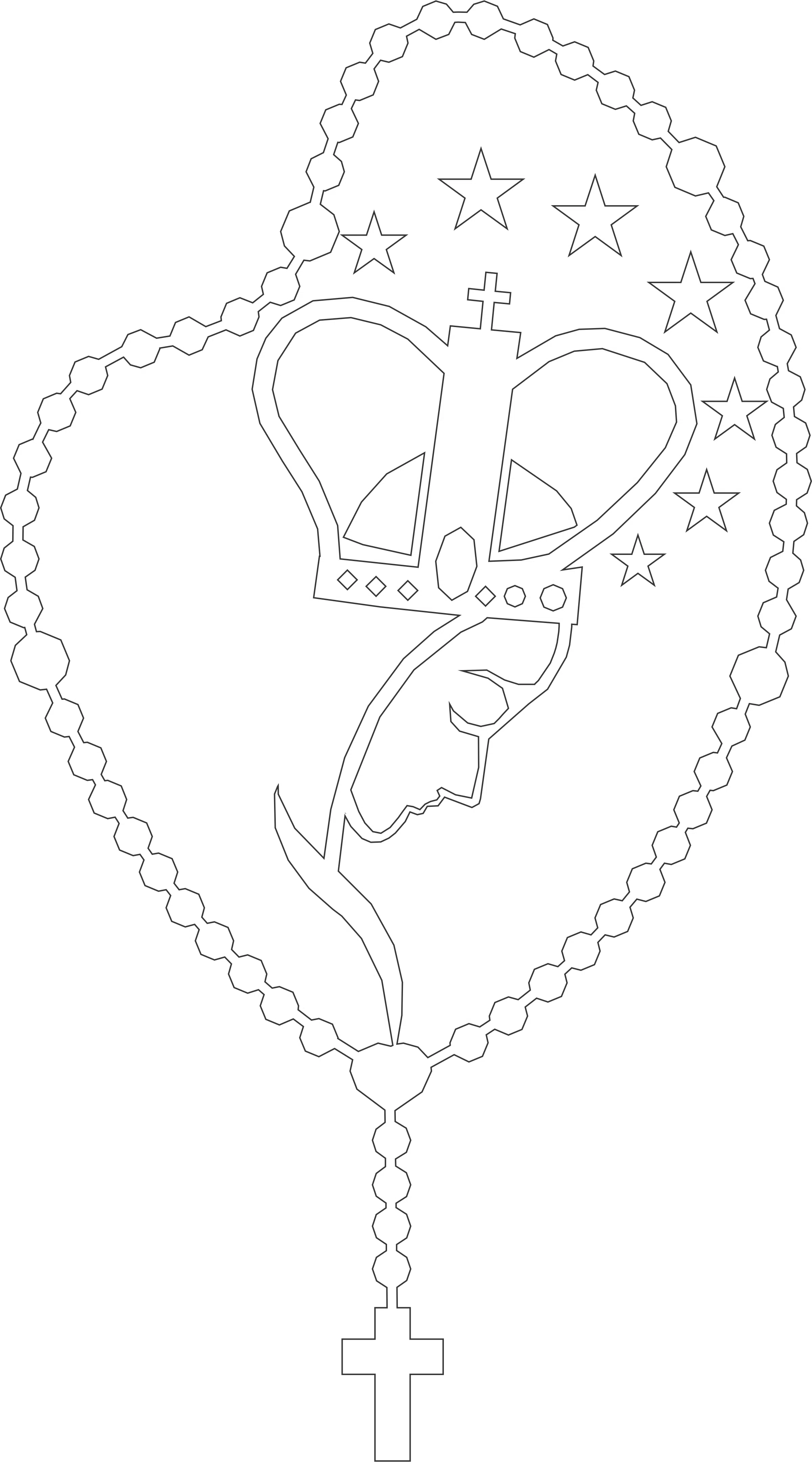 Te compartimos un vector descargable para reproducir la imagen de la Virgen María con corona y estrellas, dentro de un Rosario.