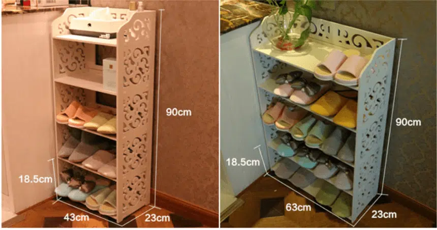 Te compartimos un vector descargable para reproducir el diseño de un organizador de zapatos de 5 niveles. Sus medidas son 23x43x90cm